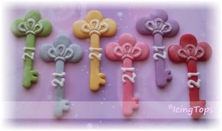 Pictures show a variation of colours. All keys are finished with a light dusting of edible