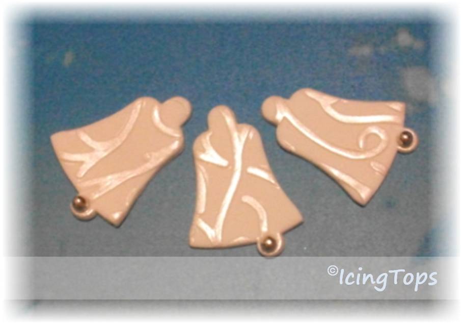 Beautiful wedding bells with curly embossed patterns highlighted with shimmering pearl lustre.